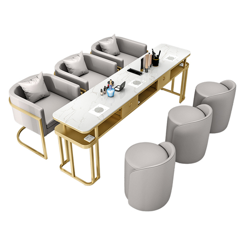 Ensemble de salon de manucure tables longues en métal ensemble de meubles de manucure en marbre table à ongles